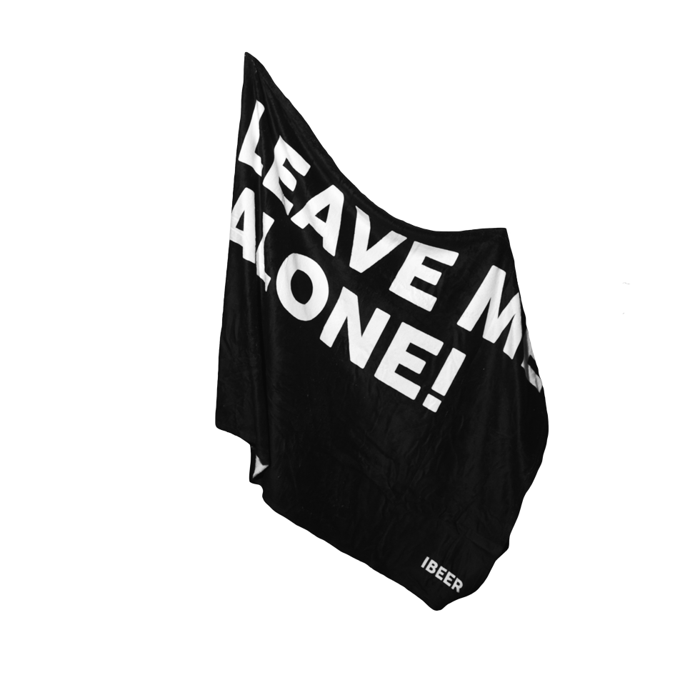 Coperta nera in pile 120 x 150 cm con scritta “Leave Me Alone!” a contrasto.